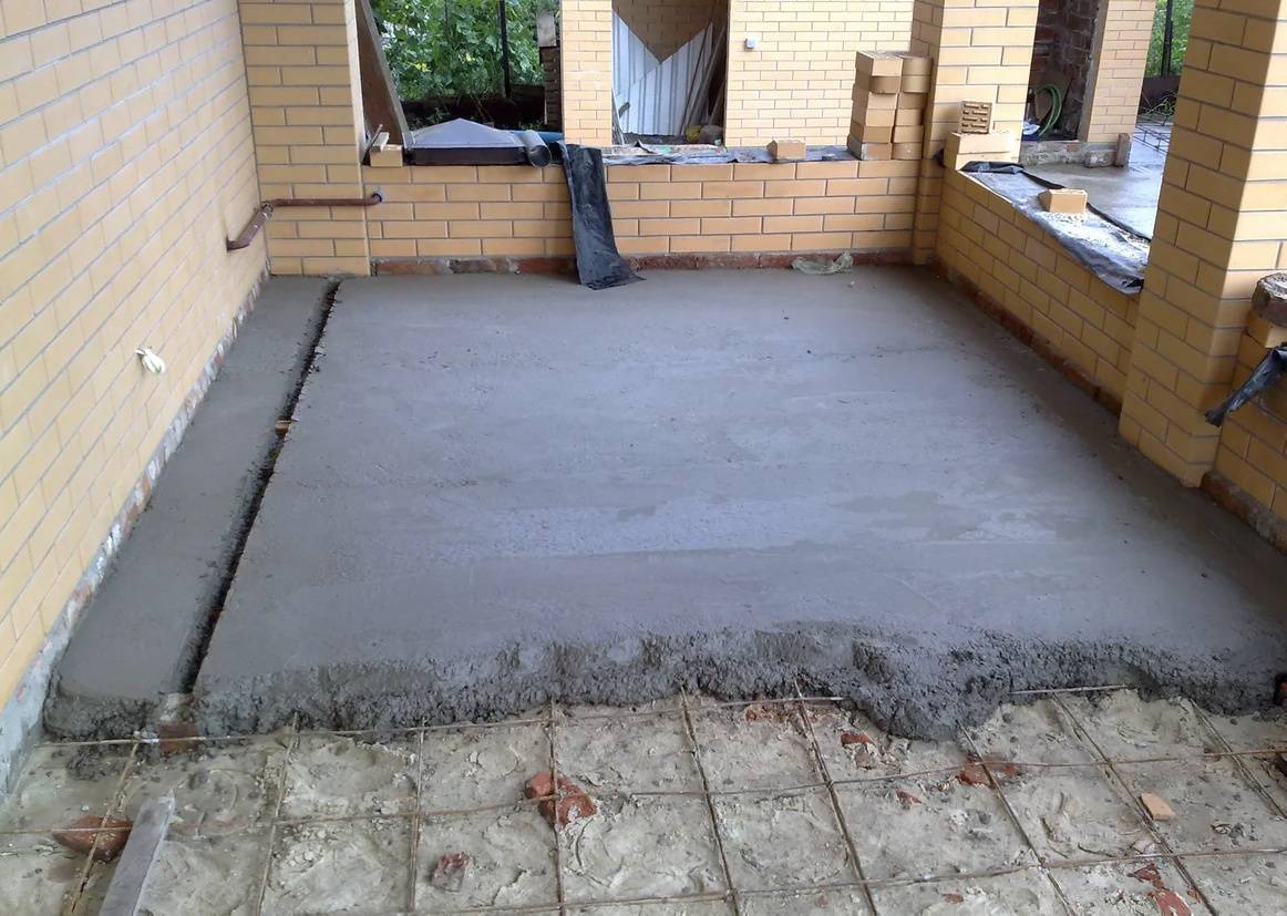 Есть два основных варианта, как его сделать: бетон и деревянные лаги. Первый способ намного проще, но потом пол придется дополнительно утеплять, так как бетон обладает большой теплопроводностью, и на веранде будет холодный пол как зимой, так и летом. Бетонная стяжка делается следующим образом: