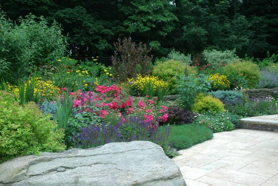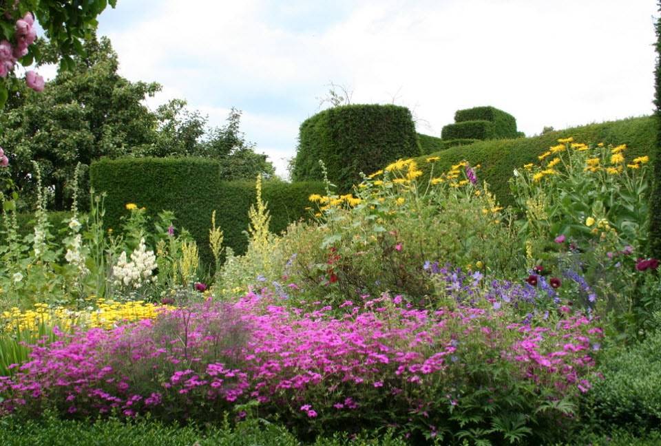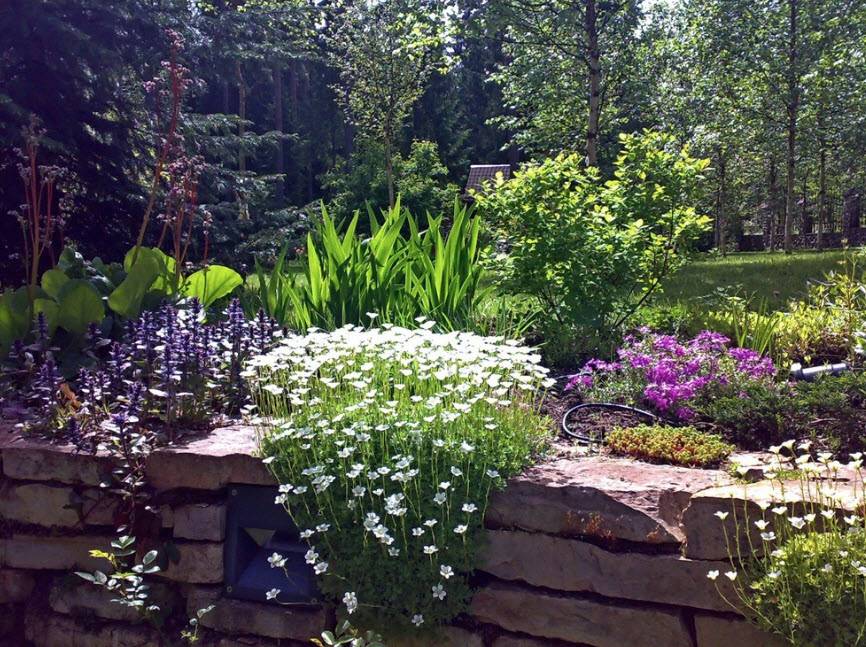 Красивая высокая клумба с многолетниками разной высотыИсточник vsaunu777.ru