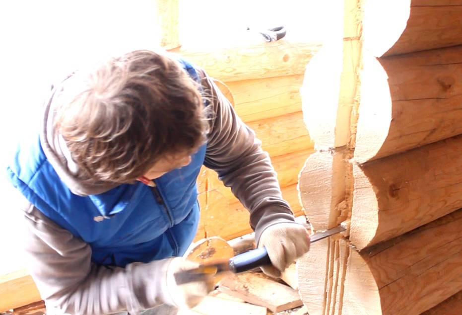 Для всех трех способов характерно производить монтаж верхней горизонтальной планки на 5–10 сантиметров ниже, чем верх дверного проема. Пространство между верхней планкой и бревном остается свободным и заполняется утеплителем. Это отверстие предохраняет конструкцию от деформации при усадке бревен.