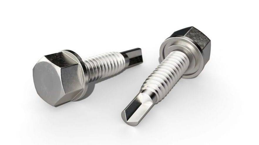 Такие саморезы со сверлом имеют шляпку-шестигранник и особую резиновую шайбу-прокладку. Последний элемент играет важную роль, так как именно благодаря ему обеспечивается достаточная изоляция от большого количества влаги, также она выступает в качестве амортизирующего уплотнителя соединений.