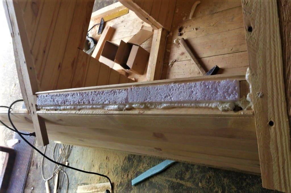 - Утепляют дно пенопластом либо другим материалом. Его следует уложить между листами фанеры.
