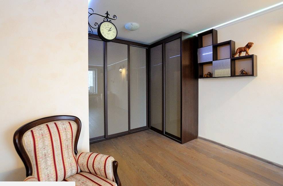 Если идеального места у стены для шкафа-купе нет, то можно приобрести угловой вариант. Это поможет сэкономить пространство и использовать его для хранения вещей. Наиболее часто такой вариант шкафа используют для организации пространства в прихожей или же в небольшой комнате прямоугольной формы.