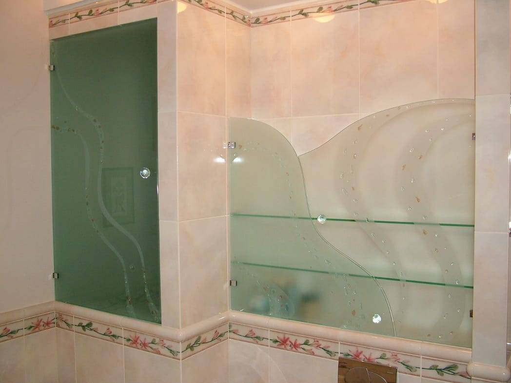 Стекло в маленькой ванной комнате – это риск получить травму. В просторной комнате шкаф со стеклянными дверцами чаще устанавливается.