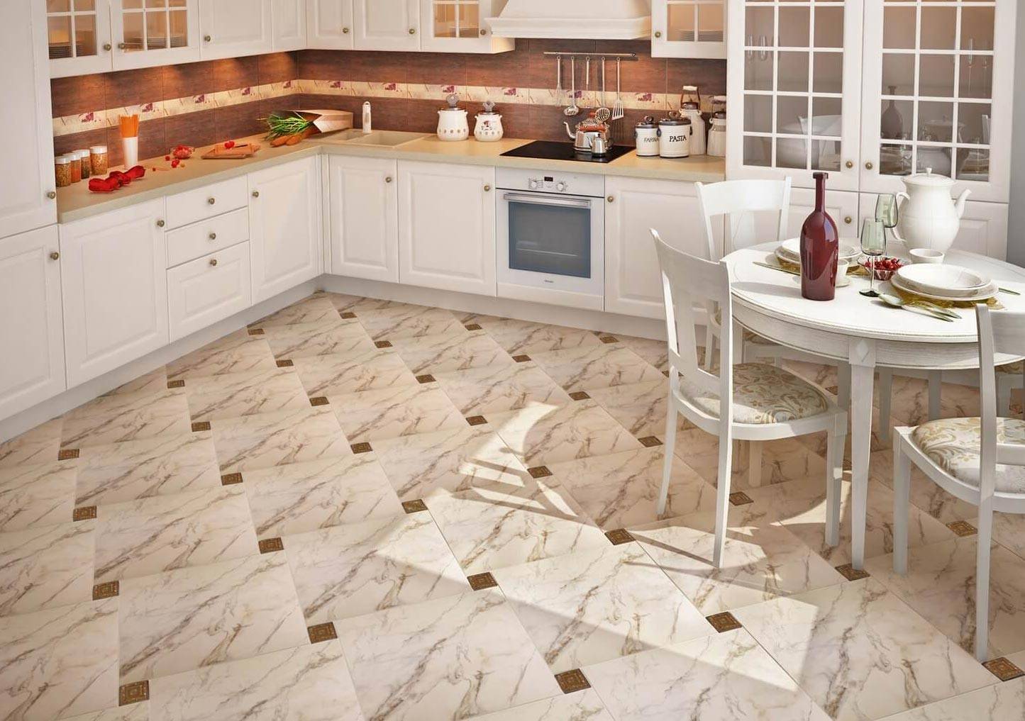Отделка пола на кухне керамической плиткой – это удачная идея. Такое покрытие будет выглядеть красиво с эстетической точки зрения. Плюс ко всему оно является экологичным. Использование плитки подразумевает легкость в эксплуатации. Ее легко мыть, чистить, можно не бояться пролить воду на пол.