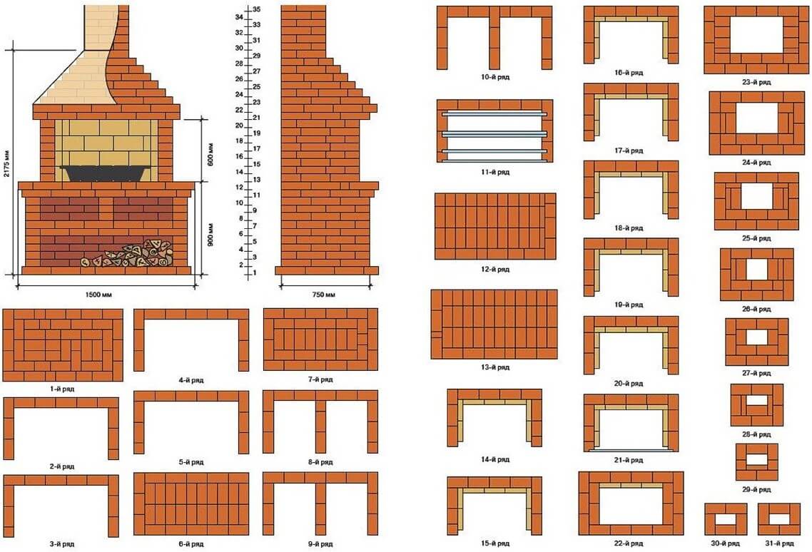Формировка жаровни происходит с помощью кирпича, учитывайте особенности и пользуйтесь схемами. Можно также сделать литую печь, но в таком случае, допускаются некоторые отклонения в выборе раствора, он обязательно должен быть огнеупорным.