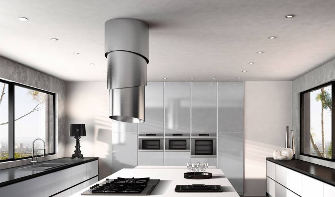 Совет: для декорирования островной зоны вы можете выбрать нестандартные модели вытяжек в форме конусовидного цилиндра или шара.