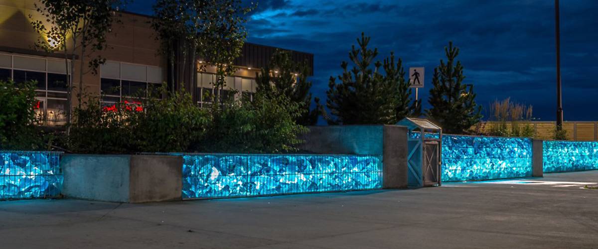 Тонкий забор из габионов поможет скрыть некрасивый или обветшалый фасад дома. Толщина стен террасы – не более 12 см. Сетку наполняют мелким щебнем, галькой или цветным стеклом. Верхнюю часть конструкции можно дополнить контейнерами для живых растений, внутри обустроить ниши для посуды, камина (мангала). Декоративная подсветка вечером подчеркнет фактурность и оригинальность постройки.