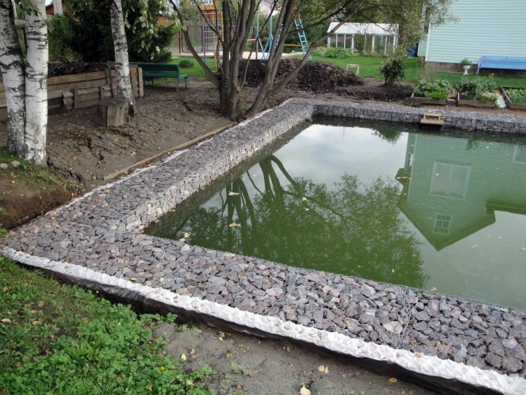 При этом, заметьте, форма водоема может быть любой, а габионы способны стать не только удачным инженерным решением, но и красивой отделкой резервуара. Сформируйте из них бортики, и заурядный пруд перевоплотится в благородный бассейн.