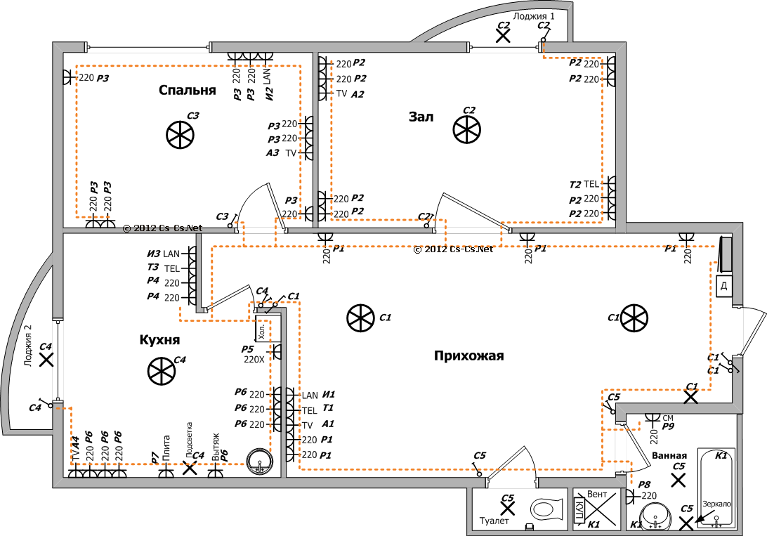 Куда и сколько нужно проводить кабельных трасс? Что касается жилых помещений (зал, спальня), то в них раньше протягивалось всего две линии.