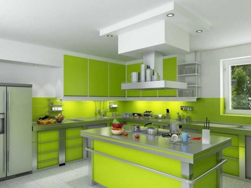 Желто-зеленая кухня – интересное сочетание, таинственное, загадочное. В нём есть и естественность и дисгармония. Зелёный цвет создаётся путём смешения синего и жёлтого. Поэтому, кажется, что в нём что-то неправильно, но на самом деле это не так.