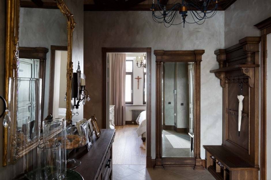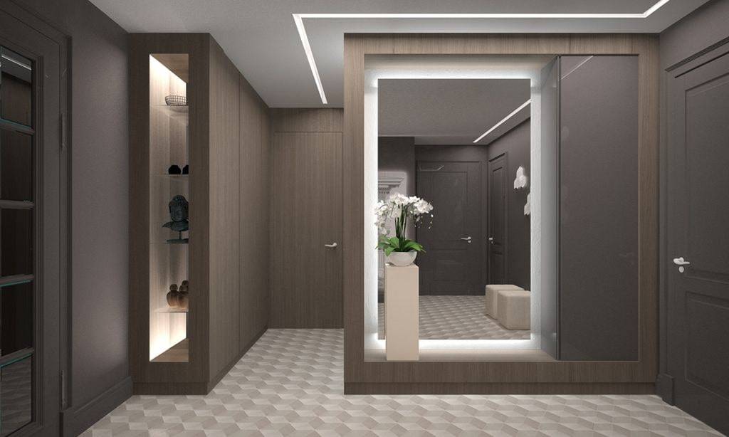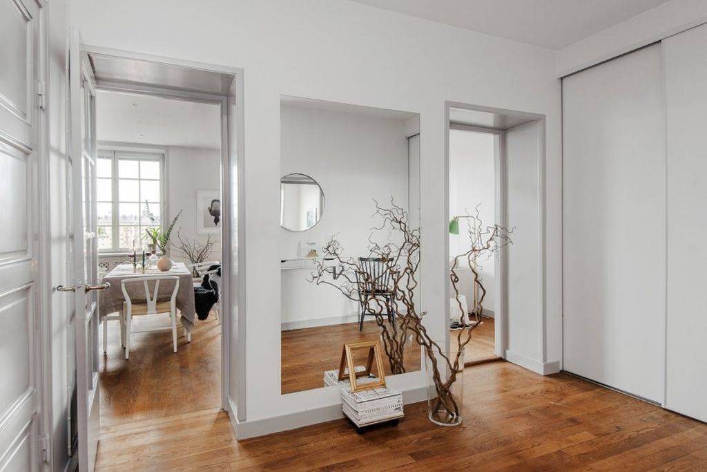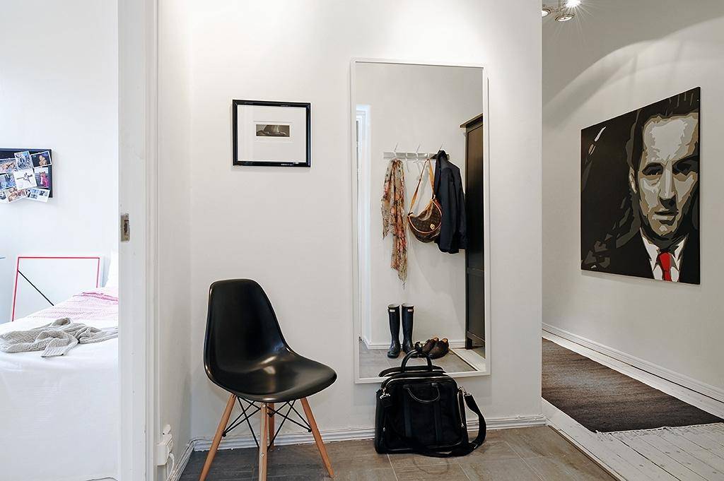 Зеркало на стене в прихожей для визуального расширения пространства.