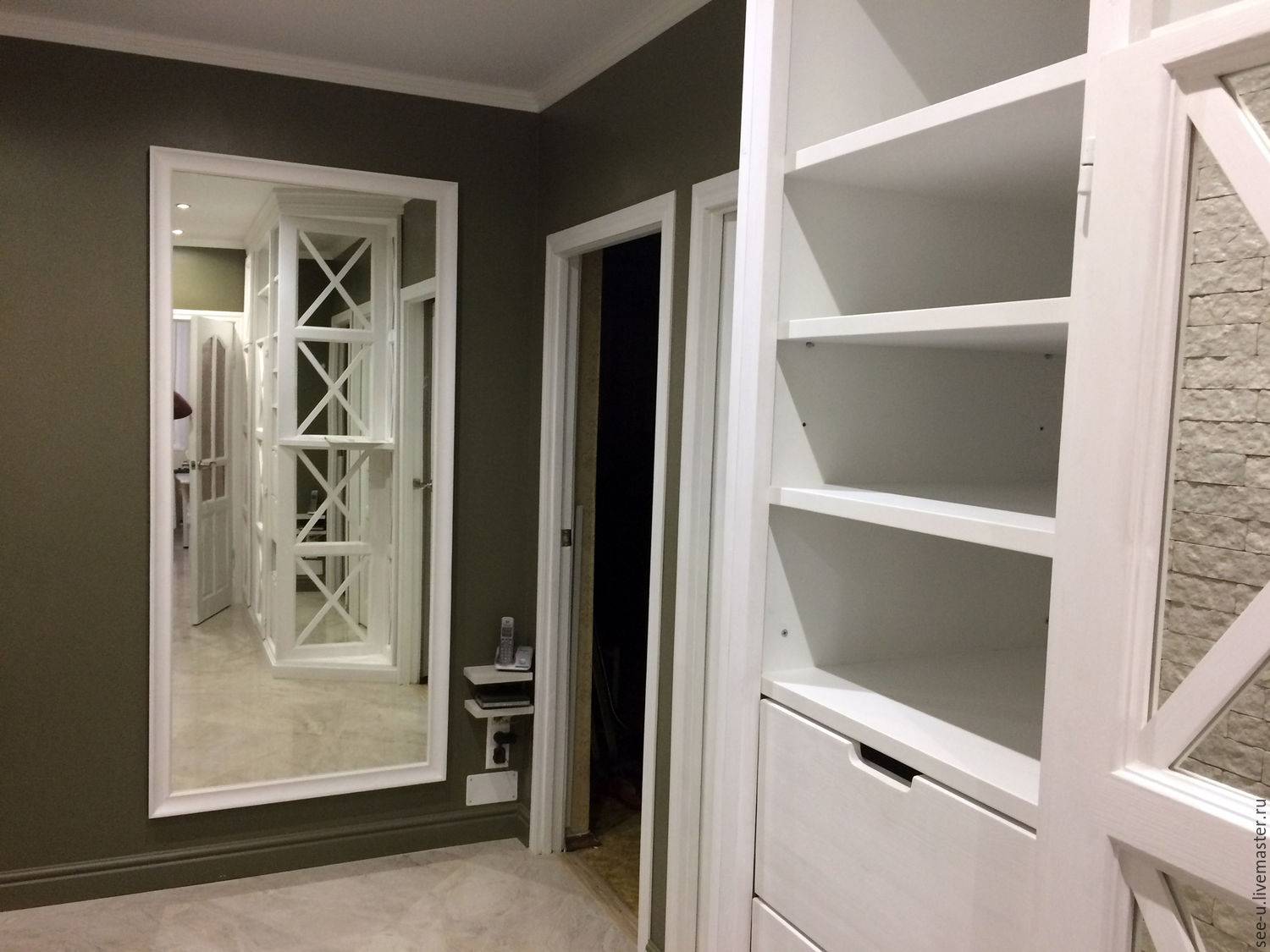 Как видно, зеркало с полкой в прихожую, такое популярное всего несколько десятилетий назад, постепенно теряет свою актуальность, уступая место трюмо или трельяжу для прихожей.