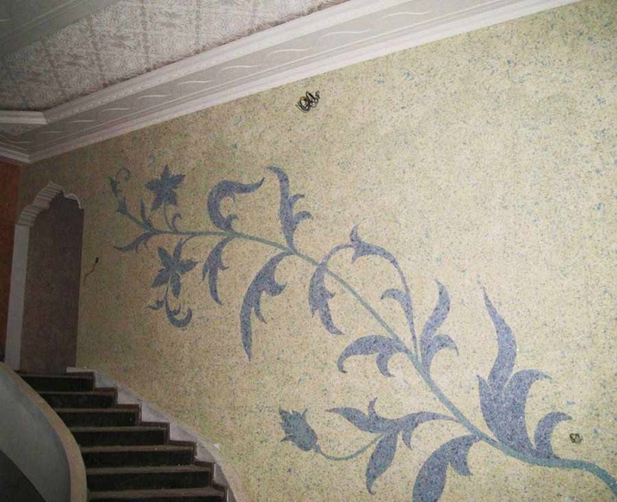 На стене создается красивая поверхность с определенным рельефом, здесь можно легко играть цветами, наносить любой узор, создавать свой дизайн жидких обоев.