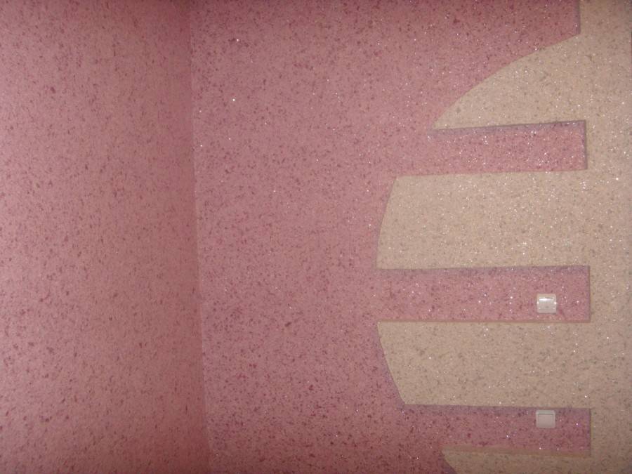 На стене создается красивая поверхность с определенным рельефом, здесь можно легко играть цветами, наносить любой узор, создавать свой дизайн жидких обоев.