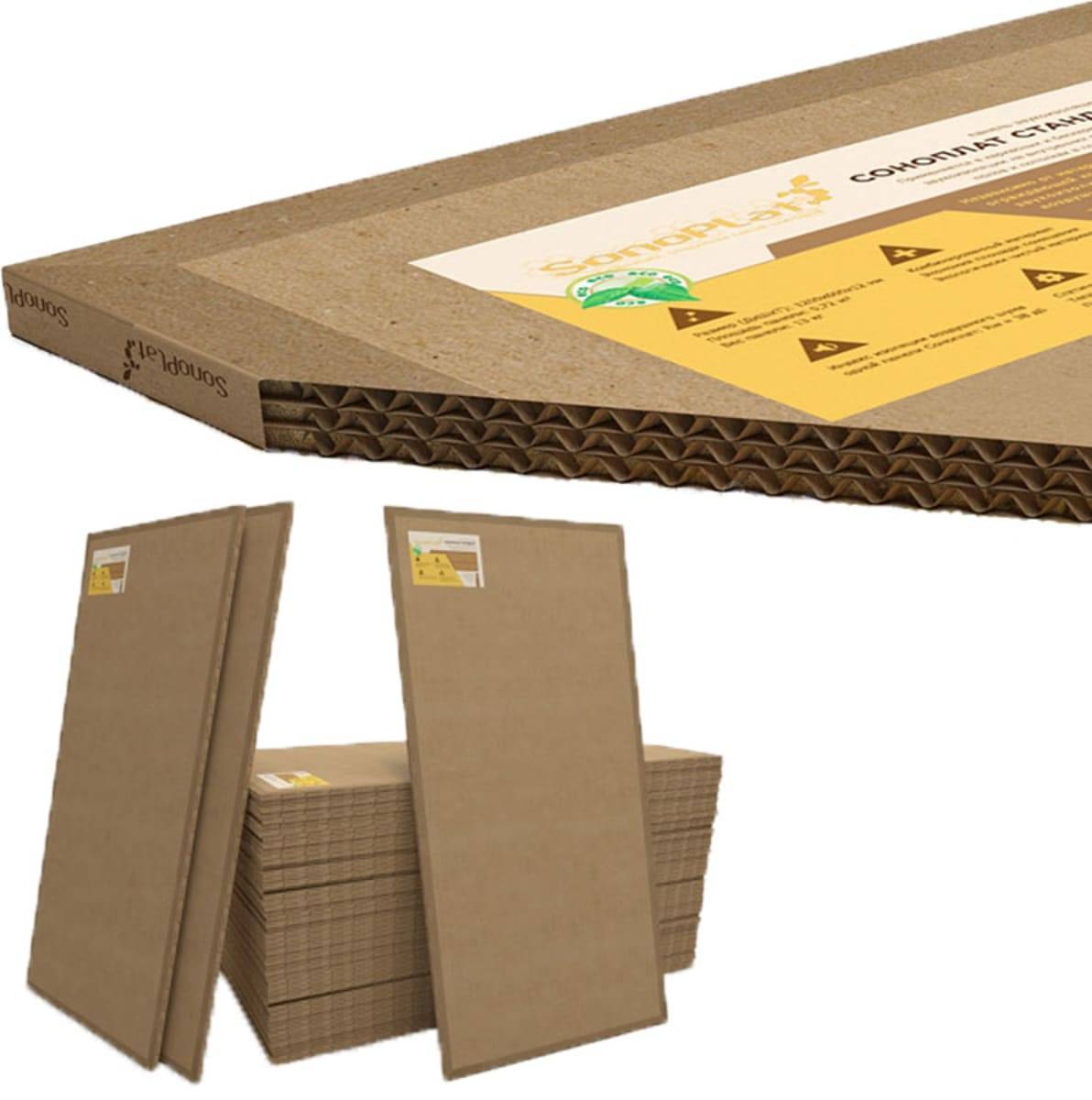 Тонкие и лёгкие панели обеспечивают шумоизоляцию до 42 дБ, способствуют снижению вибрации стен и устранению шума в коридорах. Многослойная гофрированная конструкция образует жесткий многослойный целлюлозный каркас с древесным волокном в основании.